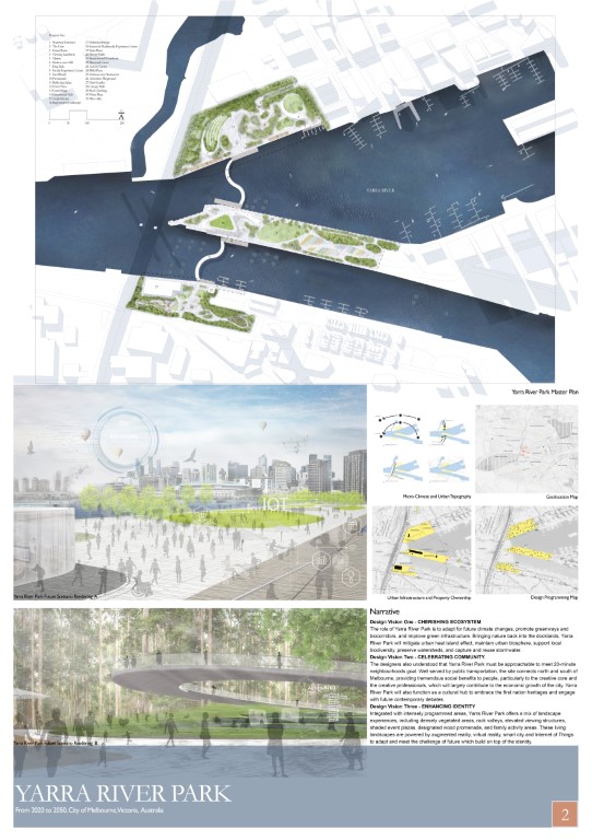 The Yarra River Park project, an initiative to reclaim the riverbank for the ecological, recreational, and economic benefit of the city, is responsible for creating a green oasis in the city heart, connecting Fisherman’s Bend National Employment and Innovation Cluster, Central Business District of Melbourne, and Parkville National Employment and Innovation Cluster.